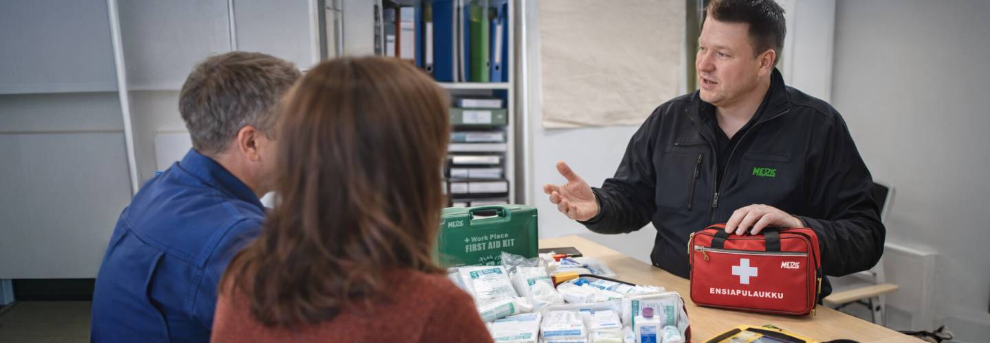 Toimintamme perustuu alueelliseen asiantuntijamalliin. Jokaisella asiakkaalla on oma nimetty yhteyshenkilö, joka tuntee työpaikan arjen, riskit ja vaatimukset. Näin ensiapuratkaisut eivät jää irrallisiksi tuotteiksi, vaan muodostavat toimivan kokonaisuuden osaksi työpaikan turvallisuutta.